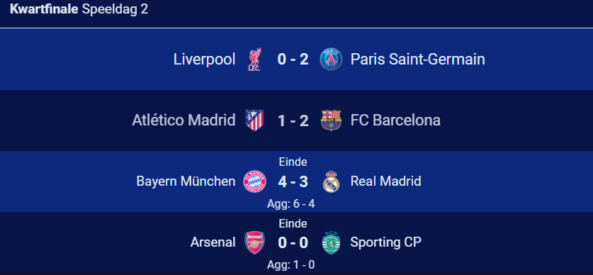 MUNCHEN- Bayern München heeft na een ongekend spectaculaire return in de kwartfinale van de Champions League recordwinnaar Real Madrid uitgeschakeld. In de Allianz Arena werd het in de slotfase 4-3, na een ruststand van 2-3. Na de eerdere 2-1 zege in Madrid genoeg voor een plek bij de laatste vier. Daar wacht Paris Saint-Germain voor de Duitsers.