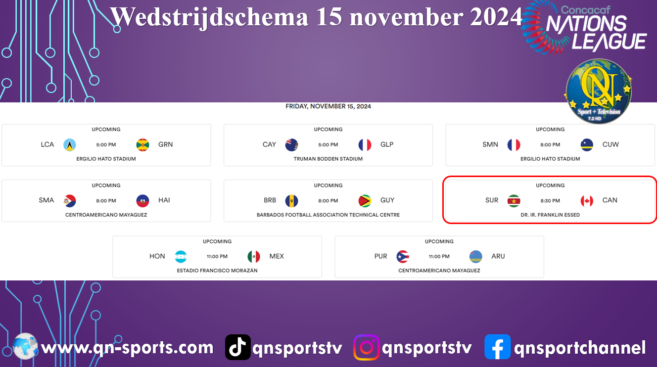 Concacaf Nations LeagueHighlightsVoetbal Concacaf NATIONS LEAGUE | Wedstrijdschema 15 november 2024 13/11/2024 © Ravin Birtantie Share article FacebookTwitterPinterestWhatsApp Latest articles Met deze selecties gaan AZ, FC Utrecht en Go Ahead de Europese week in Conference League 05/11/2025 Club Brugge houdt mede dankzij Ajax-mislukking Carlos Forbs punt over aan spectaculair treffen met Barcelona Champions League 05/11/2025 Ajax dieper in het moeras: Galatasaray pijnigt Amsterdammers in Champions League Champions League 05/11/2025 ‘Ik wil koste wat het kost naar het WK’ Highlights 05/11/2025 UFC Vegas 111 verliest twee gevechten op een dag voor het evenement Highlights 05/11/2025