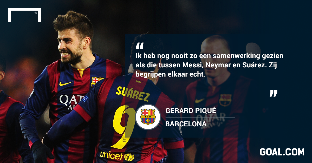 “Ik heb nog nooit zo een samenwerking tussen Suárez, Neymar en Messi gezien”, zei verdediger Gerard PiquĂ© onlangs. “We hebben het hier over de drie beste spelers ter wereld. Men denkt altijd dat zulke aanvallers zelfzuchtig zijn, maar deze jongens begrijpen wat het betekent om topvoetbal te spelen. Er zit totaal geen jaloezie tussen die drie. Dat zie je ook wel terug op het veld.”