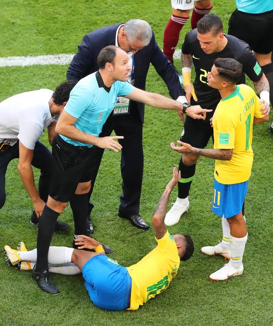 Alsof zijn ledematen een voor een uit zijn lijf werden gerukt, kronkelde Neymar na 70 minuten over het gras. Medespelers en stafleden met bezorgde gezichten om hem heen. Miguel Layun, die goed wegkwam zonder kaart, ging inderdaad even op zijn enkel staan, maar met de schade viel het allemaal wel mee. ,,Het was oneerlijk. De bal was niet in het spel en we waren buiten het veld”, was het enige dat Neymar er voor de Braziliaanse televisie over kwijt wilde.