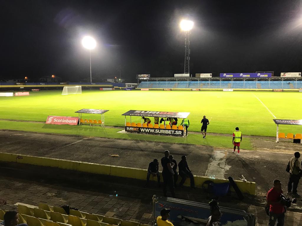 Onder vrij gering opgekomen publiek is gisteravond de aangepaste verlichting van het AK – stadion in gebruik genomen; ruim 1200 lux kan vanaf nu gebruikt worden en Rabin Parmessar gaf de namens de EBS de uitleg van het gebruik hiervan. Belangrijk is dat aan de eisen van de FIFA en de CONCACAF qua verlichting goed word voldaan. Echter wil dit nog niet zeggen dat de belangrijke Nations League thuiswedstrijden al in dit stadion gespeeld mogen worden; er zijn volgens voorzitter John Krishnadath nog tal van zaken zoals de kleedkamers die aangepakt moeten worden. Volgens de voorzitter zou het zonde zijn als dit alles niet bewerkstelligd kan worden en dat het zover moet komen. Suriname speelt haar 2de wedstrijd in de Nations League hoogst mogelijk in het AK-stadion tegen de British Virgin Islands, waar Dean Gorre met zijn jongens moet trachten het 0 – 0 gelijkspel tegen Dominica ietwat goed te maken.
