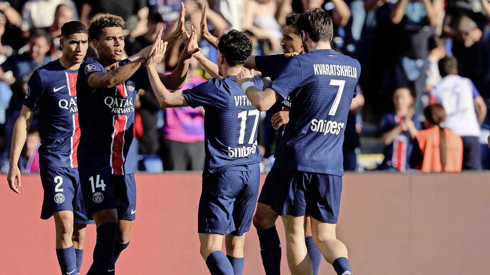 Het lukte de thuisploeg alleen in de 55e minuut om het absolute overwicht tegen nummer 14 Angers om te zetten in een treffer. Khvicha Kvaratskhelia vond met een voorzet bij de tweede paal de 19-jarige Doué, die van dichtbij overtuigend afrondde. Een kleine drie kwartier later barstte het verwachte feest los in stadion Parc des Princes.