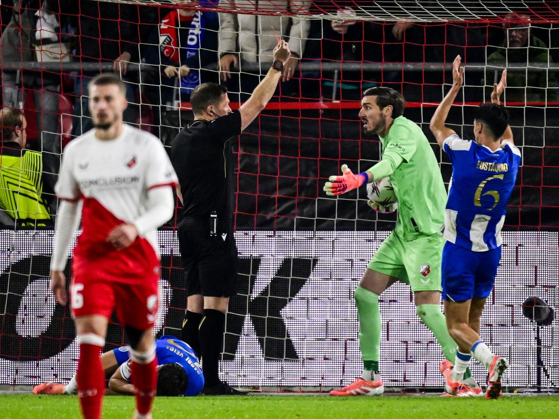 Na ruim een uur spelen was het dubbel pech voor de Utrechters. Borja Sainz zette Porto uit de rebound op 1-1. Hij liep vervolgens door om de bal uit het doel te pakken en ging na wat geduw en getrek met Barkas theatraal naar de grond. De scheidsrechter trok een rode kaart voor de Utrecht-doelman voor een kopstoot.