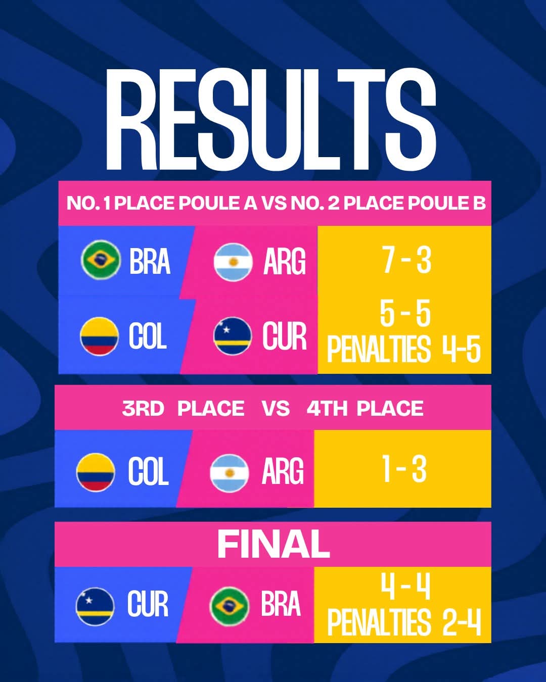 Lees hier de uitslagen van de wedstrijden die op vrijdag 10 april zijn gespeeld tijdens het Legends Football Tournament CuraƧao 2026.